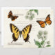 Esse artigo apresenta três borboletas comuns: o Canalha-do-Tigre Oriental, a Dama Pintada e o Monarca dispostos em uma página como espécimes com rótulos científicos de nomes. Inclui a escrita francesa e flores silvestres brancas.