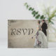 Cartões RSVP de convite para casamento elegantes e elegantes, com uma imagem de vintage digitalmente colorida de uma noiva e noiva em um fundo maravilhosamente texturizado.