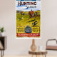 Vintage British Rail Poster - Hunting Season - The Excelente Western Rail (GWR) foi uma empresa ferroviária britânica que ligava Londres ao sudoeste e oeste de Inglaterra e à maior parte do País de Gales. Foi fundada em 1833, recebeu a sua lei de habilitação do Parlamento em 1835 e dirigiu os seus primeiros comboios em 1838. Foi projetada por Isambard Kingdom Brunel, que escolheu uma bitola larga de 7 pés (2.134 mm), mas, a partir de 1854, uma série de amalgamações viu-se também a operar 4 pés 8 1/2 em comboios de bitola normal (1.435 mm); os últimos serviços de bitola larga foram explorados em 1892. A GWR foi a única empresa a manter a sua identidade através da Lei dos Caminhos de Ferro de 1921, que a combinou com os restantes caminhos de ferro independentes no seu território, e foi finalmente fundida no final de 1947, quando foi nacionalizada. O GWR foi chamado por alguns "Caminhos Maravilhosos de Deus" e por outros pela "Via Excelente", mas foi conhecido como a "Linha de Férias", levando muitas pessoas para os resorts Inglês e do Canal de Bristol no País Ocidental, assim como no extremo sudoeste da Inglaterra, como Torquay e Minehead, em Devon, Newquay e Ruas Ives, na Cornualha. As locomotivas da empresa, muitas das quais foram construídas nas oficinas da Swindon, foram pintadas com uma cor verde Brunswick enquanto, durante a maior parte da sua existência, usava uma linha de "chocolate e creme" de duas tonalidades para as carruagens de passageiros. Os vagões de mercadorias foram pintados de vermelho, mas posteriormente convertidos em cinzas de médio. Os comboios ocidentais excelentes incluíam serviços expresso de longa distância, como o neerlandês Voador, o Cornish Riviera Express e o Cheltenham Spa Express. Também explorava muitos serviços suburbanos e rurais, alguns operados por automotores a vapor ou autocomboios. A empresa foi pioneira no uso de vagões de mercadorias maiores e mais econômicos do que o habitual na Grã-Bretanha. Operava uma rede de rotas rodoviárias (ônibus), fazia parte dos serviços ferroviários aéreos e possuía navios, docas e hotéis.