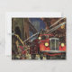 Design de ilustração da Vintage, ocupando negócios, com pessoal de emergência, bombeiros trabalhando para apagar um incêndio em um prédio em chamas na escuridão da noite em uma cidade urbana sob uma ponte torre. Os corajosos bombeiros homens e mulheres estão segurando mangueiras com água de seus caminhões de bombeiros.