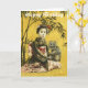 Este cartão é ilustrado com uma bela vintage geisha decorativa com fundo de design de bambu. Acima se lê "Parabéns"