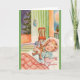 Cartão de saudação de Natal Finlandês retrô/Vintage. Doce garotinha dormindo com seu urso de pelúcia! Rauhallista Joulua! Natal pacífico!