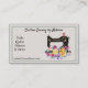 Cartão de visita divertida para costurar e colchar artesãos com gráficos de estilo vintage de uma antiga máquina de costura e soprar sotaques florais. Personalize todo o texto no formato simples online do Zazzle.