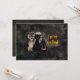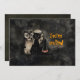 imagem do gato e coruja em excelente de fundo texturizado de madeira preta convite para festa do Dia das Bruxas