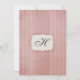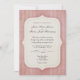 Este design apresenta um fundo listrado cor-de-rosa de morango empoeirado, e um quadro simples e elegante de creme recortado colocado sobre uma fita rosa mais escura. O texto se alterna entre o clássico Garamond e as fontes de casamento de script, com um script adicionado florescendo para estilo entre a data do casamento e o local. O design recebeu um sentimento angustiado e envelhecido para complementar o design. Um monograma personalizado inicial em seu próprio quadro menor gravatas a parte traseira do cartão de convite no design geral. Estes convites são clássicos, mas não demasiado formais, exuando um charme antigo e antiquado com uma doçura e estilo contemporâneos.