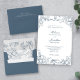 Este Cartão de Convite de Casamento elegante apresenta um design tipográfico na moda com uma ilustração de arte de linha floral vintage num tema de cor azul/cinza empoeirado. Esta papelaria de casamento está pronta para você se adaptar com os detalhes do seu dia especial. Parte de uma coleção cada vez maior.