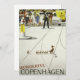 Aqui está um poster de viagens retrô vintage para Copenhague, Dinamarca apresentando uma família de patos atravessando a estrada.