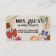 Boas e velozes costurando noções borboletas cartões de visitas ou adesivos com etiqueta de presente 'feitos à mão com amor' ou etiquetas de penduramento de produto ou de embalagem para costurar artesanatos, costureiras ou modificações de costura. Tesouras borboletas, botões e spool de fios numa estrutura decorativa de nome e fundo de bolinhas.