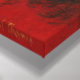 Esta canvas mostra uma dançarina vampira de vampiros, colocada antes de um fundo vermelho com uma lua de crânio gótico e estrelas.
