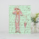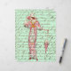 Vintage 1900's Woman Umbrella Old Script Escrevendo. O lado inverso tem um script antigo escrevendo sobre fundo verde pastel