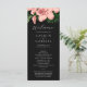 Estes programas de casamento maravilhosos apresentam uma mão pintada design floral vintage em cor-de-rosa pincelado sobre um fundo preto.