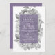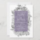 Dramaticamente elegante em tons de cinza e ameixa, nosso convite de casamento Vintage Floral em Violet apresenta um fundo de flores de pénia aquosa em preto e branco chico. Os detalhes do seu casamento são mostrados em branco contra um elemento retangular roxo puro de ameixa. Um design moderno, mas eterno, que é perfeito para assuntos formais em qualquer estação.