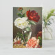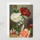 Ilustração vindimada design de natureza botânica com rosas de jardim brancos, cor-de-rosa e vermelhos florescendo em um vaso de vidro transparente.