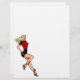 Desenho ou desenho clássico de ilustração Vintage em quadrinhos. Uma linda glamour beliscou uma beleza loira bombardeada em uma roupa casual de shorts e camisa com calçados de salto alto por um dia relaxante em casa. Uma bonito senhora retrô.
