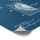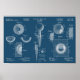 Antiguidade, patente de golfe expirada de bolas de golfe e de chás. Desenhos esquemáticos e anotações em um poster para adorável decoração temática de golfe. Desenhos técnicos brancos em azul cianógrafo para um olhar de planta. Versátil e adequado para espaços de escritórios, cavernas de homem, decoração por país, decoração por fazenda, além de interiores contemporâneos. Veja o poster de patente do clube de golfe correspondente para um par perfeito. Disponível em mais esquemas de cores. Para Dia de os pais, aniversários, aposentadoria, amantes de golfe, boa sorte e muito mais. E também para as gais e jogadores que amam o golfe.