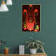 Este poster é a versão do artista de três guitarras de safra dos anos 60 digitalmente realçadas em um fundo de explosão solar vermelha.