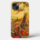 Ilustração Vintage design de férias de Halloween com abóboras e folhas de trigo. Os palheiros estão num campo de abóbora numa fazenda. Já é hora de colher as plantações maduras de abóbora na estação do outono.