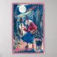 Matte poster (12 x 18) de uma Bruxa de Halloween vintage com gato preto e lua cheio, a partir de um cartão postal anterior a 1920.
