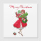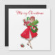 O Natal como parecia na década de 1950 com esta trabalho de arte retrô de uma senhora vestida com um vestido de cheio em vermelho e verde.