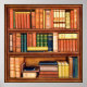 Poster personalizado com uma ilustração vintage realista de livros coloridos antigos em prateleiras antigas de madeira. Uma maneira divertida de decorar as paredes do quarto, escritório ou estudo de uma criança.