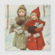 Vintage Little Girls com parcelas andando em uma rua de neve. Design de um artista sueco - Jenny Nystrom. A imagem antiga foi editada e aplicada neste cartão magnético por Alma Wad.
