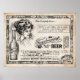 Este impressão de reprodução de cerveja de Tannhaeuser foi de um anúncio real que apareceu no início da década de 1900, antes da proibição. Ele foi restaurado digitalmente e colocado em um fundo antigo para aparecer como um impressão de safra. O impressão de cerveja do Tannhaeuser está pronto para moldar e pode ser redimensionado para ajustado de suas necessidades, mas certifique-se de que as dimensões contenham todo o gráfico de cerveja. Tannhaeuser foi feito pela Associação de Criadores Claussen em Seattle. impressão de excelente para qualquer coletor de cervejas de safra ou qualquer negócio que procure uma virada do tema do século.