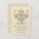 cartões de resposta do casamento vintage antigo com pássaros apaixonados na gaiola. Decorado com quadro antigo e desenho de rosas vitorianos.