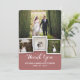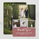 Casual e elegantemente rústico, este rico e úmido fundo de vinho tinto e tipografia de na moda, estabelece a palco de um adorável obrigado que você cartão com fotos para o seu casamento. Com modelos para uma colagem multifoto do seu dia alegre, esta carta é uma maneira adorável de obrigado dos seus entes queridos. Com uma grande foto no fundo, cada hóspede recebe uma manutenção do dia do seu casamento também.
