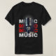 Um na moda e design de camiseta em negrito apresentando um microfone retrorreflector com a palavra "MÚSICA" criativamente destacada em cores marcantes e na tipografia. Perfeito para amantes da música, cantores e entusiastas antigos, este design irradia paixão por ritmo, melodias e vibrações clássicas.