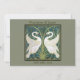 Este adorável convite apresenta uma reprodução de uma seção de papel de parede de Walter Crane do movimento Artes Inglesas e Artesanatos de arte (c 1900). O design mostra 2 Cisnes brancas em meio a rúpias verdes claras sobre um fundo azul mudo. A imagem é repetida de forma opaca no reverso, com um modelo de caligrafia para todos os detalhes do evento - frente e verso. Disponível separadamente em um plano de fundo verde sem som.