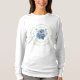 Camiseta rosa azul com detalhes rosa na parte traseira. Caligrafia " Oh, a Flor Mais Bela do Monte Carmel, vinha frutífera, o esplendor do céu".