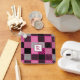Personalize esta imagem moldada por manta de retalhos nesta cadeia-chave com um monograma para um presente único para aqueles que amam colchas ou adoram costurar. Criado em vários tons de pinks quentes e magenta e preto com detalhes realistas de costura falsa. Veja também outros itens neste mesmo design no Patchpourri em Zazzle.com