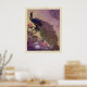 Pavão regal com impressão botânico asiático em peões cor-de-rosa em ouro e damasco roxo, com estrutura de ferro barroco ornamental. Adaptado de um antigo impressão japonês antigo. Impressão de arte da parede botânica da safra.