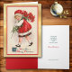 Este cartão de cartões de natal apresenta uma maravilhosa vitoriana vitoriana foi uma bela imagem de arte de uma jovem vestida de vermelho e branco com um buquê de poinsetos vermelhos sobre o ombro. A imagem é moldada em vermelho e ouro correspondentes. A frente do cartão diz "Desejar um Feliz Natal", e o texto da dentro é totalmente personalizável. Você pode deixá-lo como está, ou fazê-lo dizer o que quiser. Celebre o Natal à moda antiga com esta bela imagem de arte.
