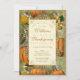 Convide a sua família e amigos para a sua comemoração de Ação de Graças com este convite temático de colheita personalizado vintage, com um padrão antigo de abóboras e abóboras em cores de laranja queimada, verde, amendoim, ouro, marrom e marfim com floretes elegantes. O script e o texto de fonte clássico estão em um modelo totalmente personalizável, formatado para adicionar facilmente todos os seus detalhes, como seu nome, ocasião, endereço do local, dia, data, hora e detalhes de RSVP. Projetado por © Tim Coffey.