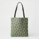 A charming vintage-style tote bag featuring purple blossoms on a fresh green background.