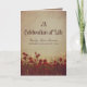 Programa de funeral dobrado em uma design com papoilas vermelhas com um toque de tons de sepia. No cobrir, o nome e os anos de vida do seu amado. Dentro você pode escrever o obituário e o programa em papel impresso para parecer antigo e foxado. No verso você pode adicionar reconhecimentos.