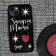A capa de telefone apresenta "Sangria Mama" em uma engraçada escrita decorativa branca sobre fundo preto. Um copo de vinho espumante e estrelas retrorreflectoras dão-lhe um olhar retrô divertido. Personalize adicionando seu nome.