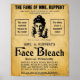 Esta impressão é uma recriação de um anúncio real para Rupperts Face Bleach que apareceu nos jornais no início da década de 1900. Este produto alegava que elimina permanentemente as espinhas, cabeças pretas, sardas, eczema, manchas de mariposa, salmoura e rugas não causadas pela expressão facial. É definitivamente um início de conversa e medida de 8 pol por 10 pol e pode ser ampliada para 16 pol por 20 pol, que é um tamanho padrão de quadro. É apresentado aqui em papel de poster. É melhor fazer upgrade para papel pesado se formatar como um impressão.
