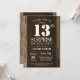 Surpreenda o 13o convite rústico do aniversário com fundo de madeira rústico. País retro do vintage. Aniversário adulto. Aniversário masculino dos homens ou das mulheres. Miúdos menino ou senhora Adolescente Adolescente Bday Convite da menina. 13o 15o 16o 18o 20o 2ø 30o 40th 50th 60th 90 100th do 80 do 70. Alguma idade. Para uma personalização mais adicional, clique por favor "personalizam-no" botão e usam-nos nossa ferramenta de design para alterar este modelo.