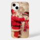 Vintage Santa Claus Snowman Capa de telefone de Natal apresenta um Papai Noel alegre e um boneco de neve na neve.