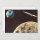 Vintage ilustra viagem futurista e transporte Ciência Ficção imagem espacial. Um design de estilo quadrinho retrô sci fi apresentando uma nave-fogueira voando no espaço sobre a lua e voltando para a Terra do planeta no futuro.