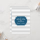 Convites personalizados para almofadas de noiva com cinzas de luz de grande safra e padrão de listras brancas, estrutura azul-marinho rústica e detalhes náuticos. Personalizável com o seu texto.