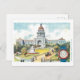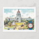 Esta é uma reprodução de um cartão postal antigo mostrando o Texas Capitol com o selo do estado no canto.