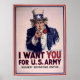 Vintage, Poster de Recrutamento do Exército dos EUA, retratando o tio Sam