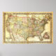 Um legal, velho poster de mapa dos Estados Unidos da América.
