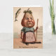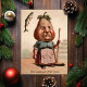 Mulher-cabeça-de-pera com cartão de Natal de vassoura. Imagem de vintage de alta qualidade restaurada personalizada. Típico humor vitoriano.