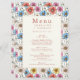 Um toque floral encantador para a sua recepção de casamento. Este cartão de cardápio do estilo vintage de flor silvestre com um estilo colorido desenhado à mão, na borda floral ao redor dos detalhes do seu menu. Esta design é perfeita para casamentos de jardim, rústicos ou botânicos. Uma bela maneira de mostrar o estilo da sua refeição de casamento.