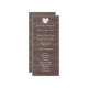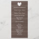 Vintage, modelo de casamento chic country de madeira castanha escura. Design de estilo Shabby com coração rústico romântico e tipografia de na moda. Fundo do painel do celeiro de madeira com texto branco. Personalize o que deve estar em seu programa. Material de casamento de tendências para noiva e noiva. Incluir nomes, data, local, ordem da cerimônia e festa de casamento. Parte do conjunto de temas que combinam com acessórios de noiva e muito mais.
