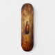 A bottle of beer on the wooden skateboard pattern, light brown and amber in color, with a wood grain texture and detailed background. A matte painting with surrealistic details done in the style of oil paintings, with exquisite detail rendering, smooth brushstrokes, fine lines, and a strong sense of atmosphere in the ultrahigh definition image. Warm tones and soft lighting are used
